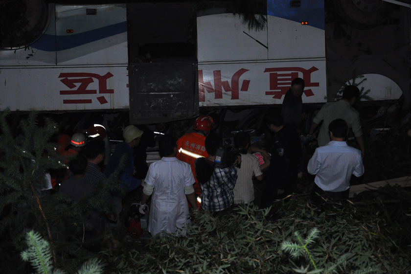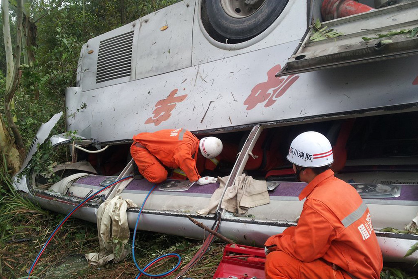 【财新网】(记者 黄晨)10月18日,湖南省永州永连公路,一辆载有48人的大客车行驶至双牌茶林路段时,突然失控翻入30余米深的山崖。目前事故已造成4人死亡3人重伤,车体损坏严重。